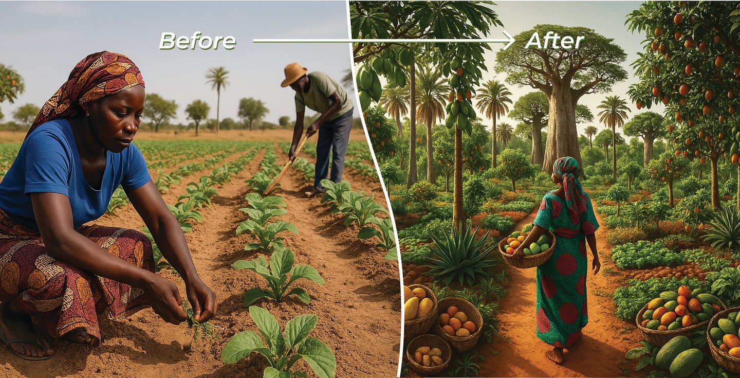 Féro is principally focused on transforming monoculture cropland in Senegal into thriving, biodiverse and most of all highly profitable farming systems for smallholder farmers. We want to see nature return to the ~3,89 million hectares of deforested lands for agriculture in Senegal. We need agricultural ecosystems that benefit both people and the planet. Real, lasting impact is only possible when reforestation also strengthens farmers’ livelihoods. The core reason we know they will choose our approach is simple: it offers a stronger, more profitable business case for smallholders.