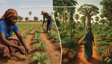 Senegal lies within the Great Green Wall (GGW) initiative, a continental effort to combat desertification by planting trees along the southern edge of the Sahara. Through strategic partnerships and a franchising model, we aim to scale our agroforest and greenhouse system across the country, with a strong focus on the GGW corridor.